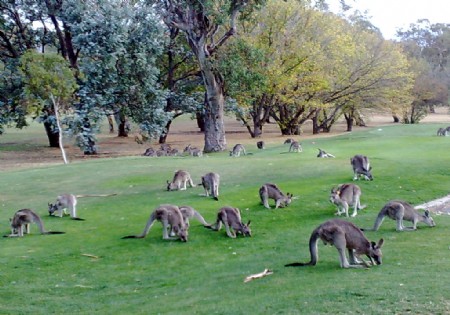 5/30/2009 12:07:48 AM Hi folks, glad you like it. We have lots of Kangaroos around our course. They are not frightened of golfers and often you have to "shoo" a few away if your ball rolls in amongst them. No touching though, they are still wild animals.ough, they are still wild animals. |